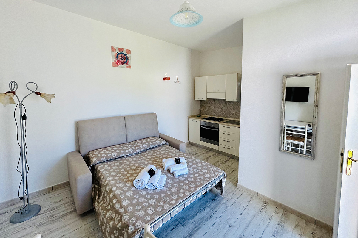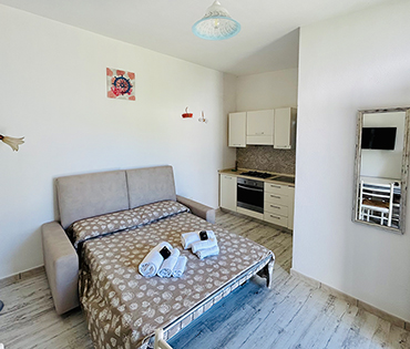 Ogni camera è dotata di aria condizionata e la cucina di ogni comfort; tostapane, macchina del caffè, microonde, frigo, freezer e forno. All'esterno un patio con tavolo in marmo immerso tra ulivi centenari.